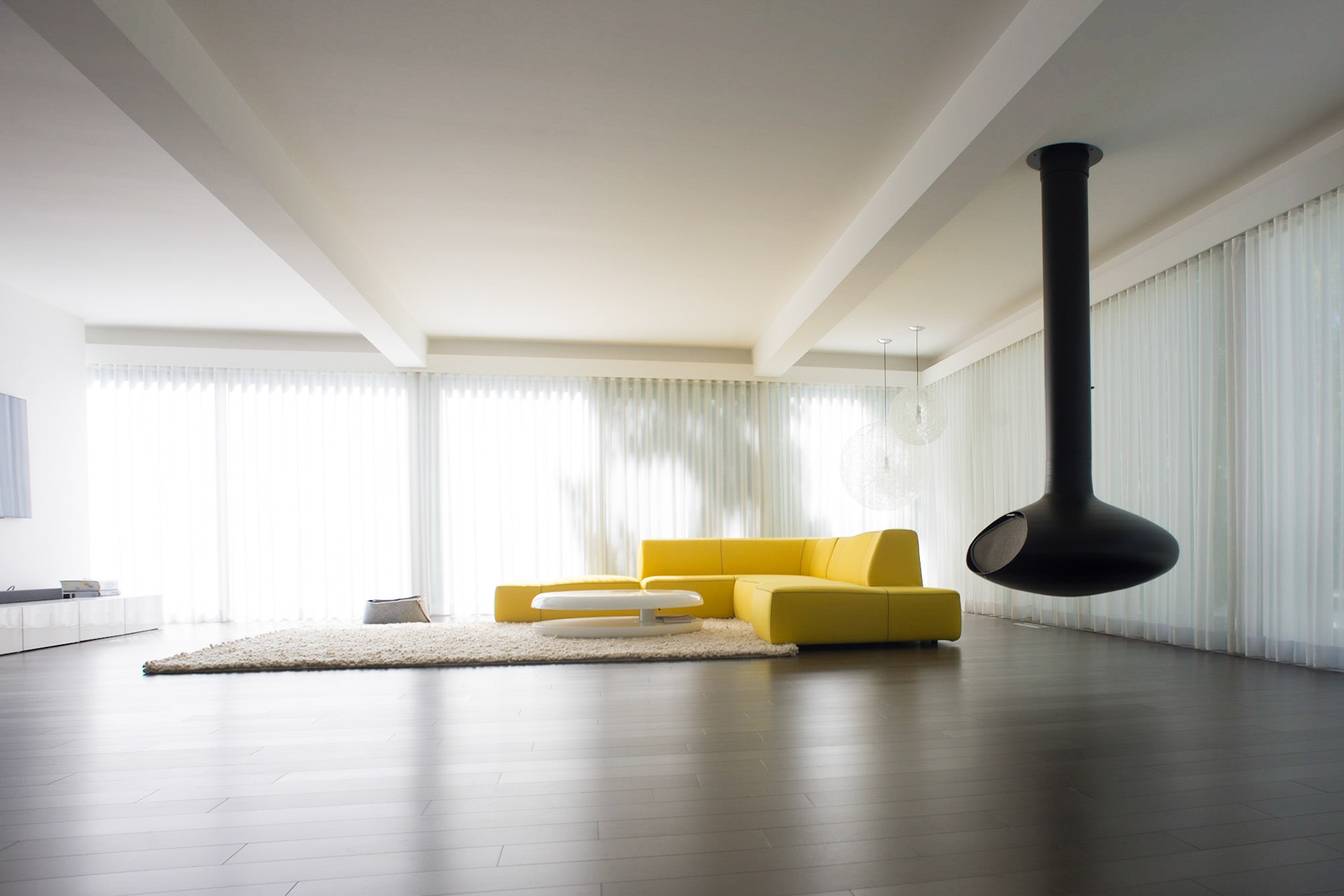 The aim of this house is to get the feeling of the outdoor scene even when we are inside it. This is an environment that exhales transparency, inviting nature inside the house. The lack of regular walls favors surprising views. The residence looks to be a pavilion that’s almost floating amongst the trees.